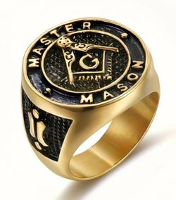Gold Plated Master Mason Ring Black Enamel Square Compass Masonic Band Size 10$39Kansas City, MO