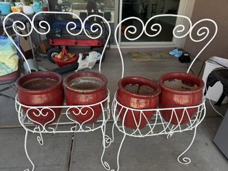 Two White Heart Flower Pot Stand Holders With Four Red Potters$30Tucson, AZ