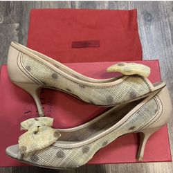 Valentino Garavani Nude Raffia Bow Pumps Peep Toe Shoes Polka Dot Heels Size 8$200Los Angeles, CA