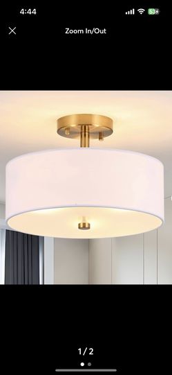 3-Light Gold Semi Flush Mount Ceiling Light,12'' Drum Light With White Fabric Shade,Modern Close To Ceiling Light For Bedroom, Living Room, Kitchen, D$15Phoenix, AZ