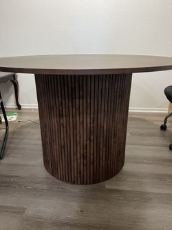47" Round Dining Room Table Walnut Wood Veneer Tabletop, Farmhouse Dinner Table with Two-Part Tabletop for 4-6, Rustic Circel Dining Table with MDF St$120Alta Loma, CA