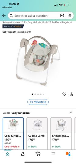 Ingenuity Soothe 'n Delight Compact Portable 6-Speed Plush Baby Swing with Music, Folds Easy, 0-9 Months 6-20 lbs (Cozy Kingdom)$35Fort Lauderdale, FL