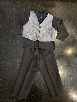 Size 2T / 24 Mo Boys Gray Vest Suit Dress Pants Slacks Black Long Sleeved Button Up Shirt Christmas$15Gilbert, AZ