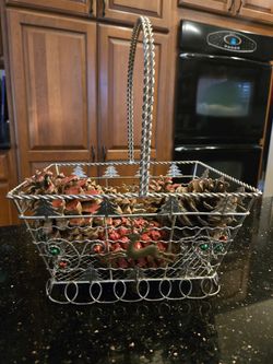 Christmas Decoration Metal Basket Reindeer & Trees w/ Painted Pinecones Inside Decorative$18Gilbert, AZ