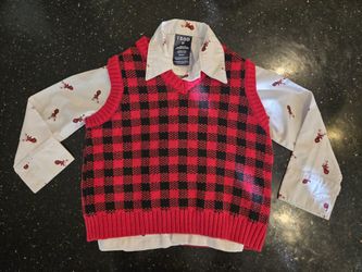 Size 2T Boys Christmas Checkered Red & Black Vest and White Button Up Long Sleeved Shirt Reindeer$10Gilbert, AZ