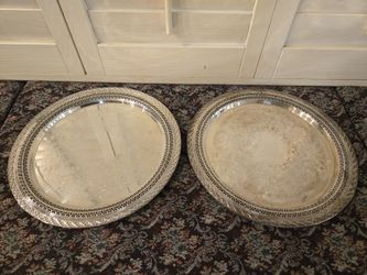 Set of 2 Large Silver Plate 15" Round Serving Trays WM Rogers & Son Spring Flower #2072$62Gilbert, AZ