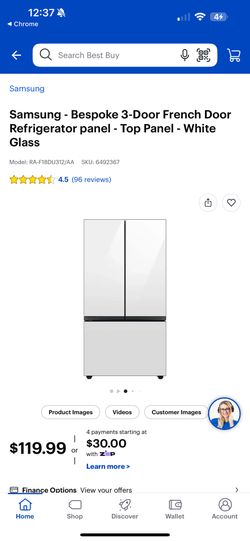 Samsung - Bespoke 3-Door French Door Refrigerator panel - Top Panel And Bottom Panel - White Glass$250Naples, FL