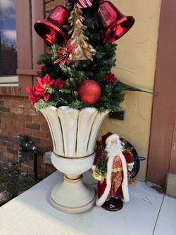 Beautiful gorgeous Christmas tree outdoor decoration with the vase and there is a light to with the Santa$200Sterling Heights, MI