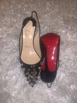 New Christian Louboutin Drama Sling Black Silver Studded Heels Size 36 $850Las Vegas, NV
