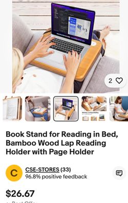 Book Stand for Reading in Bed, Bamboo Wood Lap Reading Holder with Page Holder$10Nashville, TN