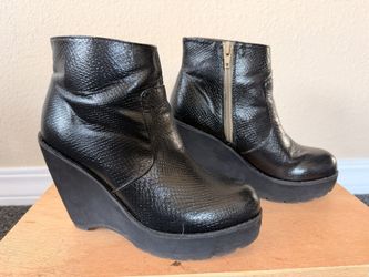 SoldBlack leather wedge boots with green zipper$15El Paso, TX