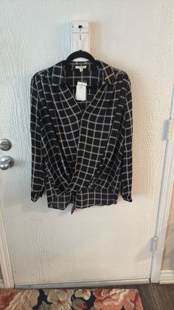 Pleione Black And White Wrap Blouse Size L$35Brea, CA