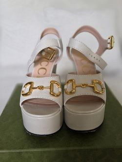 Gucci Nappa Charlotte Horsebit 40/135mm Platform Sandals 40.5 Mystic White$500Naples, FL