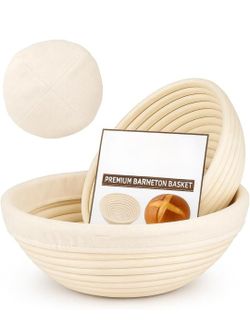 Brand New Premium Round Bread Banneton Basket with Liner (Set of 2 9" Round Baskets)