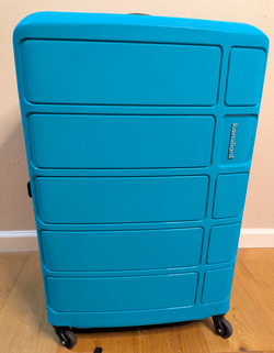 Kamiliant by American Tourister Large Harrier 78 Cms Polypropylene (Pp) Hard Sided 4 Wheeler Spinner Suitcase/Luggage (Coral Blue)