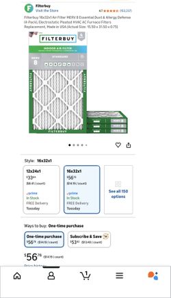 Filterbuy 16x32x1 Air Filter MERV 8 Essential Dust & Allergy Defense (4-Pack), Electrostatic Pleated HVAC AC Furnace Filters Replacement, Made in USA $40Torrance, CA