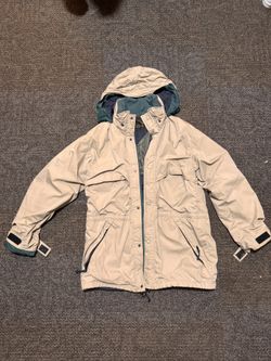 Eddie Bauer Men's Beige Green Hooded Parka Jacket Button Zipper Logo Accents$40Turlock, CA