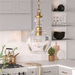 Brushed Brass Pendant Light With Seeded Glass Dome$30Orient, OH