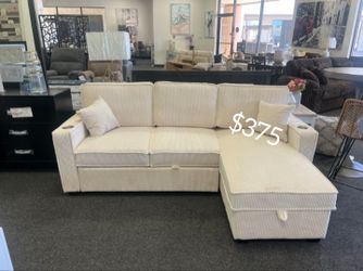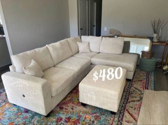 Gorgeous Ivory Corduroy Sectional Sofa With Storage Ottoman And USB Port$480Norwalk, CA