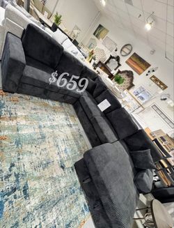 Beautiful‼️4-Pc Black Fur-Like Jumbo Corduroy Sectional Sofa With Ottoman ✅️No Tax ✅️$529Norwalk, CA