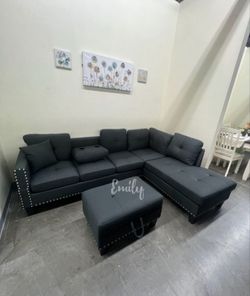 3-Pc Stylish Black Linen Like Fabric Sectional Sofa W Storage Ottoman $399Norwalk, CA