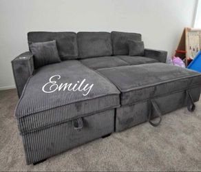NEW 2-Pc Corduroy Sectional Sofa With Pullout Bed, Storage, And USB Port$399Norwalk, CA