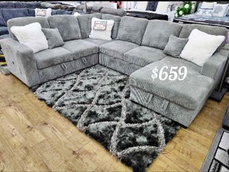 Beautiful! Light Gray 4-Pc Convertible Sectional Sofa With Storage, Pullout Bed, And USB Port $659Norwalk, CA