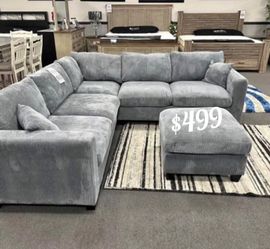 Sectional Sofa With Ottoman Grey Corduroy Fabric $499Norwalk, CA