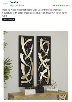 $65 Brand New Deco 79 Metal Abstract Home Wall Decor Dimensional Wall Sculpture with Black Wood Backing, Set of 2 Wall Art 12"W, 36"H, Gold$65Queens, NY