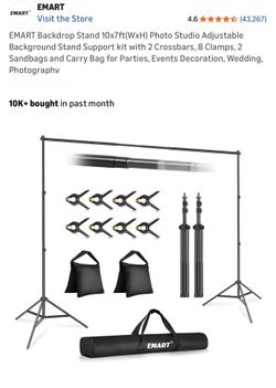 $30 Brand New EMART Backdrop Stand 10x7ft(WxH) Photo Studio Adjustable Background Stand Support kit with 2 Crossbars, 8 Clamps, 2 Sandbags and Carry B$30Queens, NY