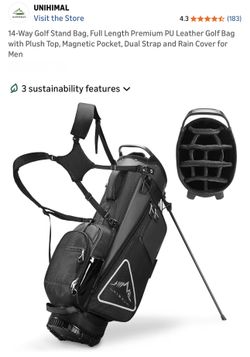 $100 Brand New Unihimal 14-Way Golf Stand Bag, Full Length Premium PU Leather Golf Bag with Plush Top, Magnetic Pocket, Dual Strap and Rain Cover for $100Queens, NY