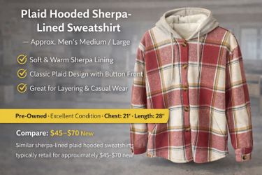 Plaid Hooded Sherpa-Lined Sweatshirt – Approx. Men’s Medium / Large $8Fresno, CA