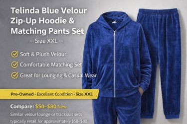 Telinda Blue Velour Zip-Up Hoodie & Matching Pants Set – Size XXL $15Fresno, CA