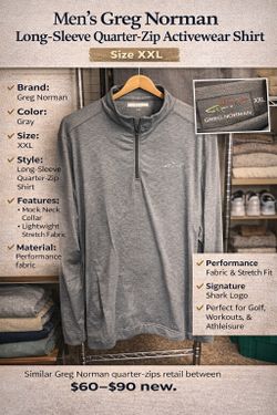 Men’s Greg Norman Long-Sleeve Quarter-Zip Activewear Shirt – Size XXL $8Fresno, CA