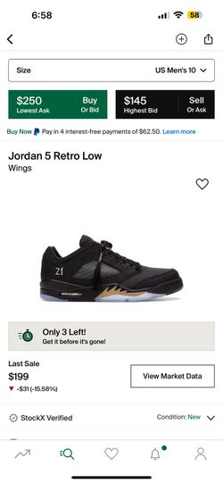 Jordan 5 Retro Low Wings$200Edwardsville, PA
