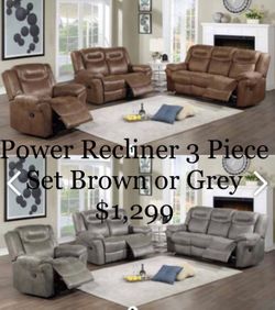 Grey or Brown Breathable Leatherette 3 Piece Set Power Recliner Sofa Loveseat And Chair Brand New$1,299Corona, CA