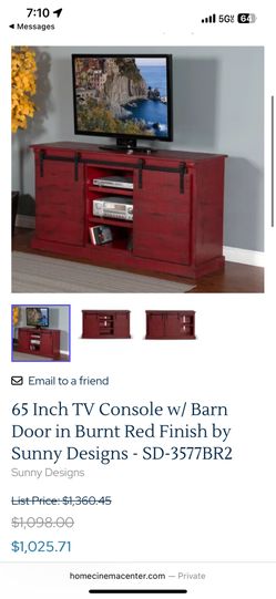 65 Inch TV Console w/ Barn Door in Burnt Red Finish$350Los Angeles, CA
