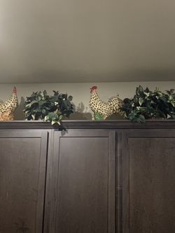 3 Ceramic Roosters And 4 Silk Greens For Decorating Kitchen $150Sultan, WA