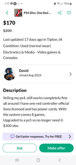 do not buy off this guy its a scam look at the listings and youll see this will try to get you to pay him befor you gdt the items $1Davenport, IA