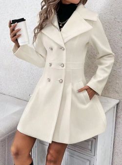 Women's Solid Double Button Pocket Overcoat, Casual Long Sleeve Lapel Neck Outerwear for Fall & Winter. Size L . $35Victorville, CA