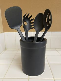 Utensils Spatula, Cooking Spoon, Pasta Server And Slotted Spoon. And Stoneware Holder. $10 For All, Utensils And Holders. $10Victorville, CA