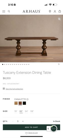 Arhaus Tuscany Extension Dining Table $3,000Phoenix, AZ