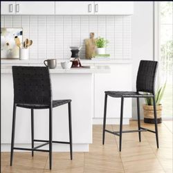 Wellfleet-Barstool 24" Seat/Counter Height - Woven Faux Leather Metal Base -Black - By Threshold$59Deer Park, NY