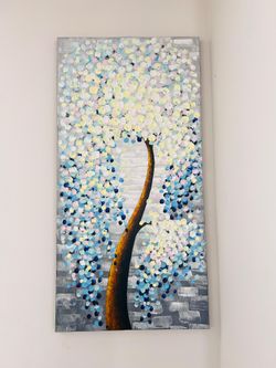 🎨 Hand-Painted 3D White Flower Tree AbstractPainting – 48x24 Inch 🌿✨$70Charlotte, NC