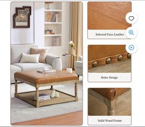 Large Square Ottoman Coffee Table for Living Room, Upholstered Tufted Faux Leather Footrest Storage Ottoman with Solid Wood Shelf, Footrest Stool (Bro$99City Of Industry, CA