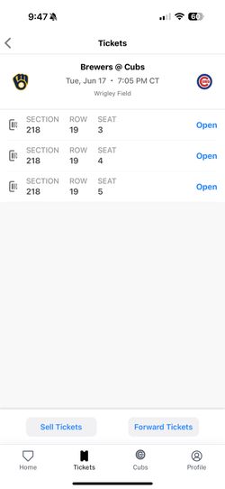 Cubs Vs Brewers Tickets Tuesday June 17 2025$180Bolingbrook, IL
