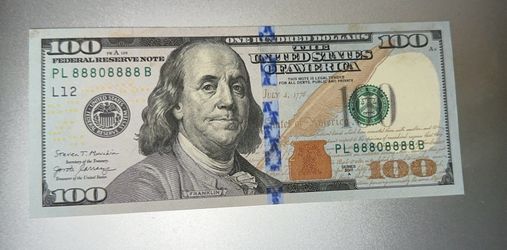 2017 $100 Bill, Crispy, Uncirculated, Almost Solid 8$7,777Montclair, CA
