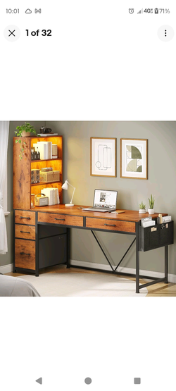 Computer Desk with 5 Drawers&Bookshelf, Reversible Home Office Desk w/LED Lights$200Dunwoody, GA