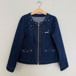 Girls Denim Jacket 6-7Y, Pearl Embellished Dark Wash Blue Jean Coat Zip Up$18Monroe Township, NJ