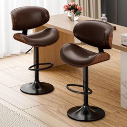 Set of 2 Brown Adjustable Swivel Leather Bar Stools **Assembly Req** $30Hacienda Heights, CA